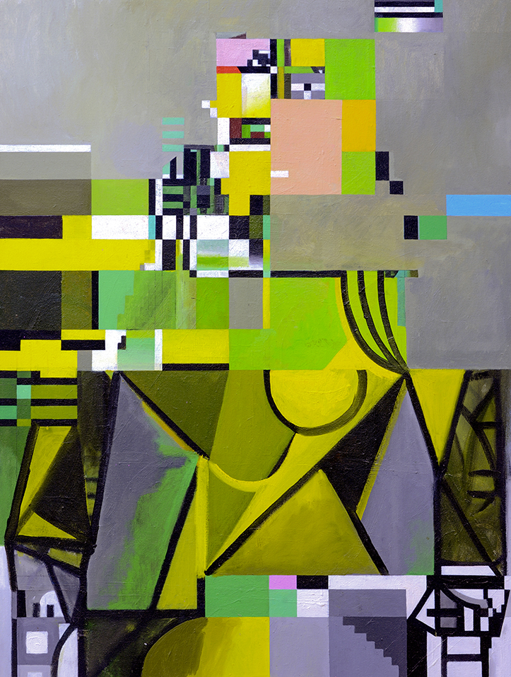 Nick Fudge, Cubist Pure Data, Household enamel and metallic paints on canvas. Dimensions: 168 x 128 cm / 66 x 53.3 inches.  2003